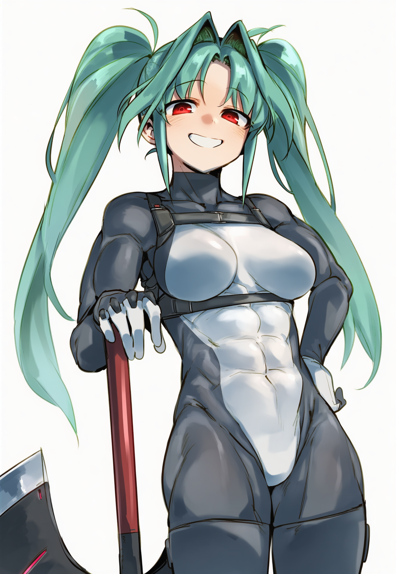 "Gamma is trained in a variety of weapons out-of-the-box! She's an experienced veteran without seeing a day of combat. Merely picking up a weapon gives her the ability to use magic related to it: with all the gusto of a seasoned warrior! Gamma, let's have a look at the devices on the table."