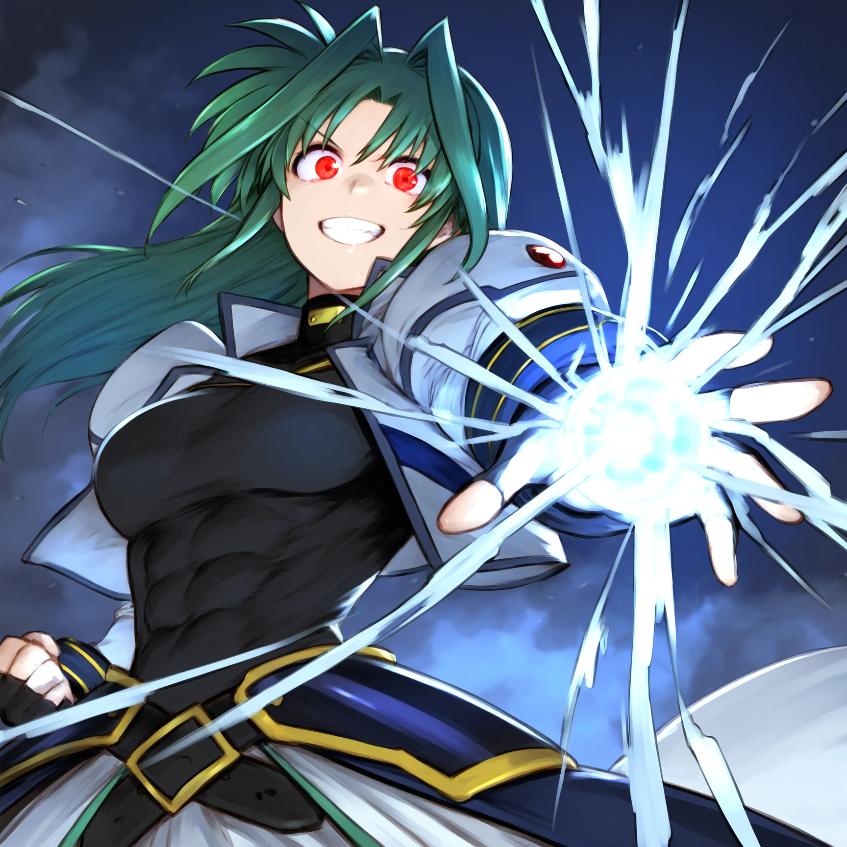 In terms of weaponry; you see no such provision for her to carry weapons. Instead, she has two high-power lasers and nano-fabrication emitters implanted in her eyes which she uses for repairs and fabrication on the field. By all accounts, she is not made for magic combat that you have seen. Instead, the lasers appear to be an improvised weapon which is doubtful if her designers ever considered that she would use as one.